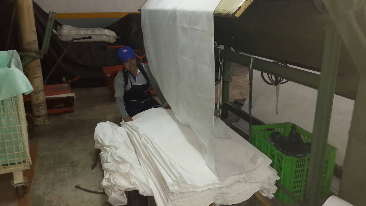 Checking for fabric lengthwise, defect, mending and remove dirt before washing (Finishing Department).